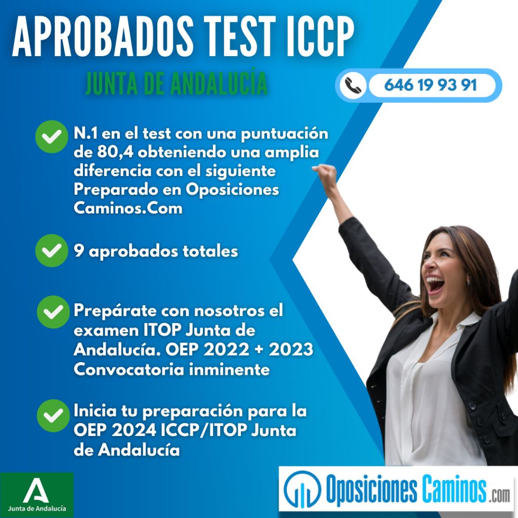 El examen escrito ICCP se ha fijado para el 1 de Febrero dejando el camino abierto a la convocatoria inminente ITOP Junta de Andalucía. OEP 2022 + 2023 que es otra gran oportunidad con 15 plazas con examen test y escrito de sólo 40 temas a celebrar en 2025.